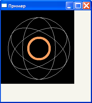 Пример:Procedure OnCreate; Begin Img.Resize(256, 256); Img.Ellipse(25, 25, 239, 239, 0, 0, 0xFFFFFF); Img.Ellipse(75, 25, 189, 239, 0, 0, 0xFFFFFF); Img.Ellipse(77, 27, 190, 240, 0, Pi*2/3, 0xFFFFFF); Img.Ellipse(77, 28, 190, 241, 0, -Pi*2/3, 0xFFFFFF); Img.Ellipse(95, 95, 169, 169, 8, 0, 0x60A0FF); End;Результат работы:
